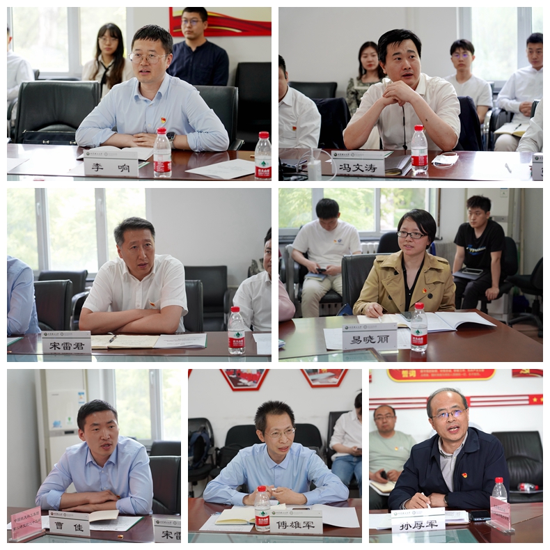 在交流环节,航天二院二十三所发展计划处处长李响、人力资源处处长冯文涛、微波技术研发中心主任宋雷君、信号处理研究室主任易晓丽、航天射频芯片事业部副主任曹佳,学院副院长傅雄军、微波与太赫兹技术研究所所长孙厚军分别分享了学习习近平新时代中国特色社会主义思想的心得和收获,并结合各自分管工作交流了未来双方合作开展党建、科研与人才培养等工作的思路和建议。