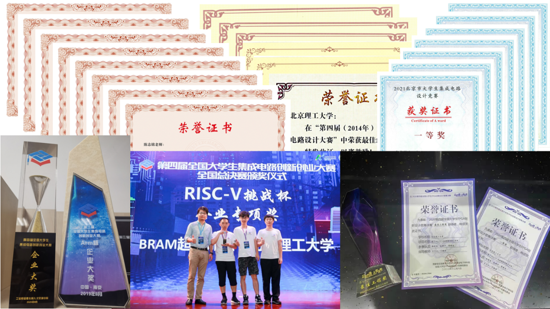 团队除了基础的教学、科研和研究生培养等工作之外,还非常注重产学研合作和学生的早期培养,聘请10余名产业界知名专家学者作为校外导师,为本科生规划了从大一至研究生阶段的贯通培养方案。团队于2011年成立了微系统与集成电路俱乐部,依托俱乐部讲座交流活动、大学生创新训练计划、开放性实验课程、各类集成电路学科竞赛培训等,由专业教师指导学生循序渐进地开展实践和创新。俱乐部已累计指导近千名学生,在全国集成电路创新创业大赛、北京市集成电路设计竞赛等多个专业学科竞赛中,参赛和获奖人数屡创新高,累计获得包括国家级竞赛第一名(企业大奖)在内的省部级以上奖项315项,连续多年在获奖人数和级别上名列全国高校前茅。