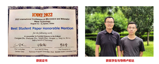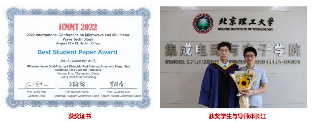 在ICMMT会议中,来自清华大学、上海交通大学、小说h 等高校的279篇论文参加竞赛,经过口头报告、现场提问等环节,我校研究生朱瑀勍同学的《Millimeter-Wave Dual-Polarized Dielectric Rod Antenna Array with Planar Slot Excitation for 5G Mobile Terminals 》获得ICMMT2022学生优秀论文、朱承玮同学的《Low-profile Tri Polarized Antenna in the S Band》获得ICMMT2022学生优秀论文提名。在全国微波毫米波会议学生竞赛中,共有98篇论文参加竞赛,我校研究生孙家星同学的《回退区间效率改善的三阶伪负载调制平衡功放》获得NCMMW2022学生优秀论文。