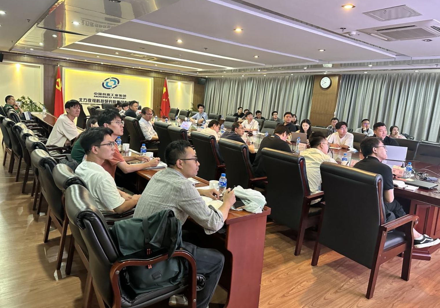 郭欣介绍了夜视院集团的基本情况、产品布局和未来发展规划。学院教师邵岩、戴贇贇汇报了学院相关项目研究成果。双方围绕合作项目进行了热烈讨论,并达成了一系列合作意向。