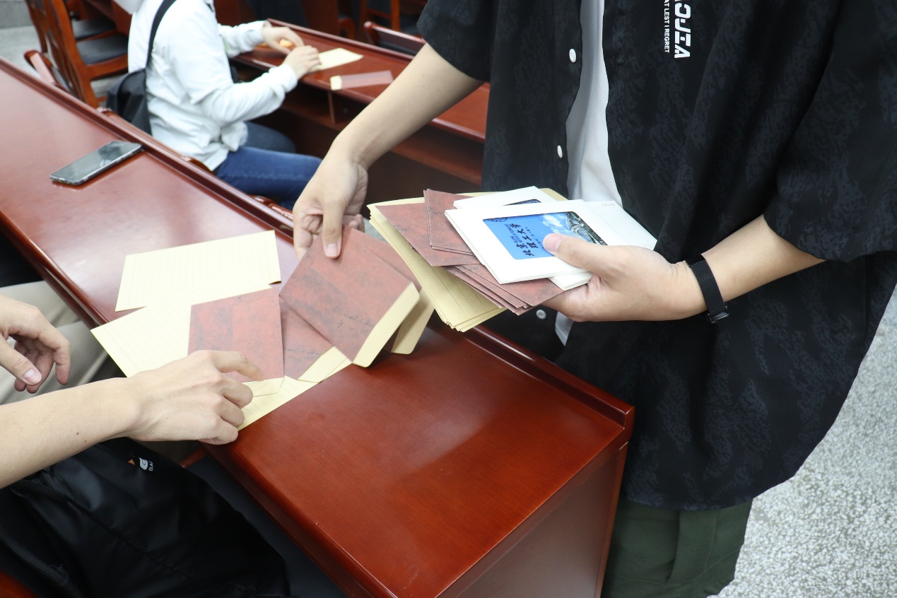 毕业赠言环节,在场的毕业生们纷纷在明信片上写下对自己、对好友的期许和祝福,现场氛围热情温馨。