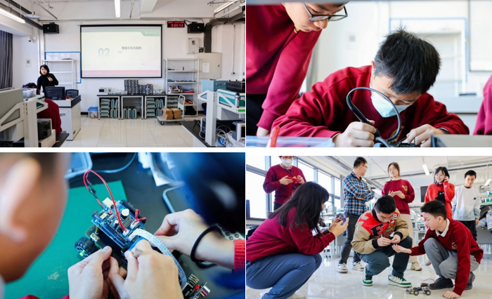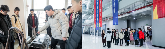 在工训楼的创谷基地,同学们参观了智能车俱乐部、机器人队、航模队等学生科创组织,见证了车队和机器人队的最新创新成果,近距离体验大型科研实训设施,充分感受到科技与创新的魅力。